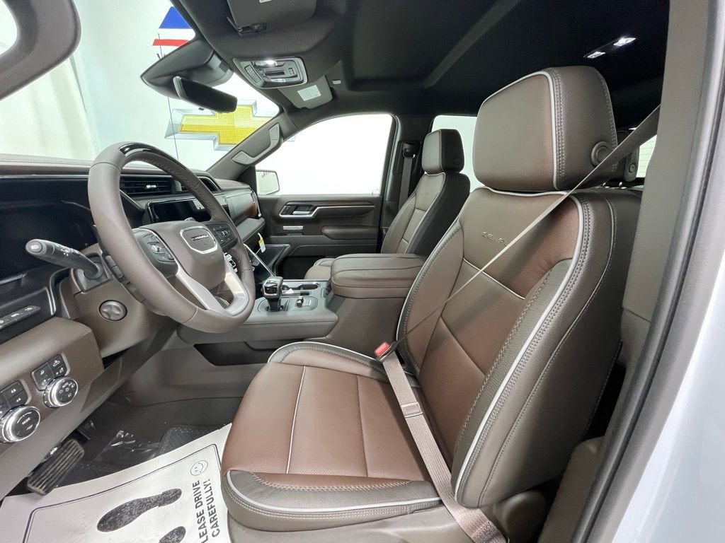 Stepping inside, you'll be surrounded by premium materials and advanced technology. The Denali-exclusive interior features genuine wood accents, heated and ventilated front seats, and a stunning 15-inch Head-Up Display that keeps vital information right in your line of sight. The Bose premium audio system with 7 speakers will immerse you in your favorite tunes, while the wireless charging pad and multiple USB ports keep your devices powered up.